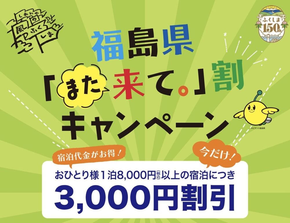 福島県「また来て。」割キャンペーン、ご利用いただけます。
