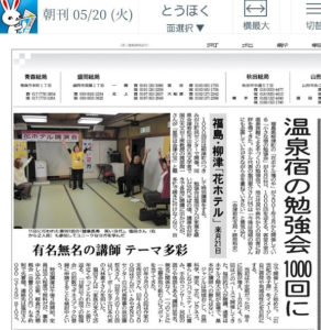 一昨日の河北新報東北版に、先日の花ホテル講演会を掲載いただきました。取材をいただいた時に、内容を再確認すればよかったのですが、普段は毎回弊館の小さな宴会場で開催しているので、最大30名様ですが、1000回目の当日6月21日は町内の大きな施設(つきみが丘町民センター)なので、定員30名ではなく、100名以上お席をご用意可能です。ぜひご一緒に記念講演の渡部潤一先生(国立天文台上席教授)のお話をいかがでしょう。